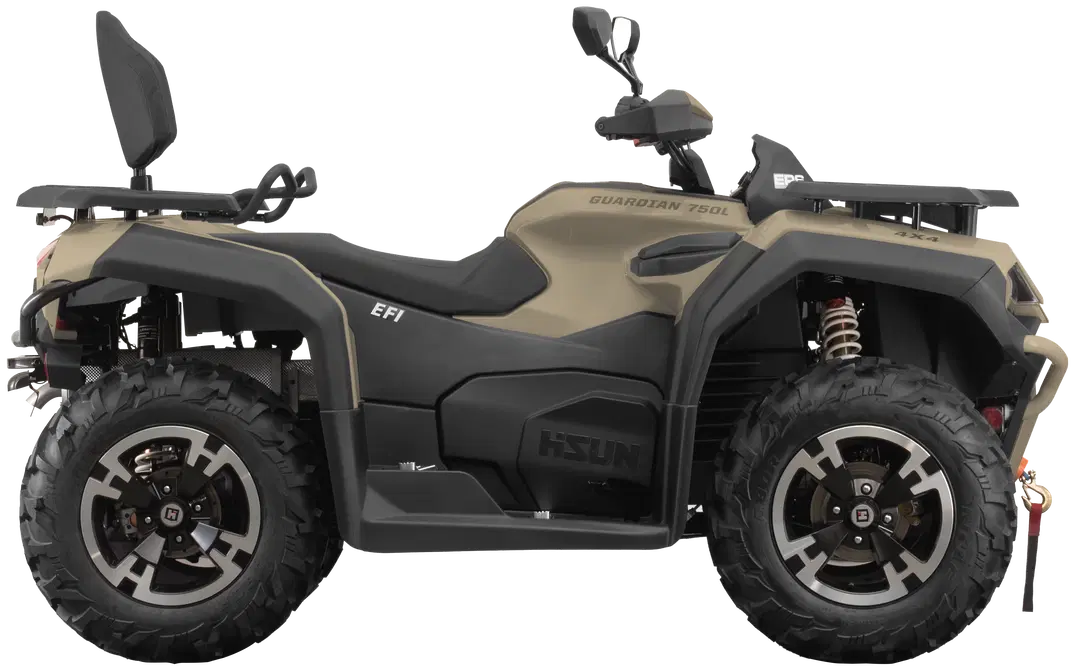 Hisun Guardian 750 LTD 2-Up er en kraftig og allsidig ATV som ikke inngår kompromisser. Med sin robuste 750 cc motor, firehjulsdrift og sjenerøse lasteplass kan den håndtere ethvert terreng. Takket være vinsjen, LED-belysning og servostyring gir den maksimal funksjonalitet og sikkerhet. Uansett vær sørger håndtak- og setevarmeren for optimal komfort. Stol på ytelse og pålitelighet – med Hisun Guardian 750 LTD 2-Up!