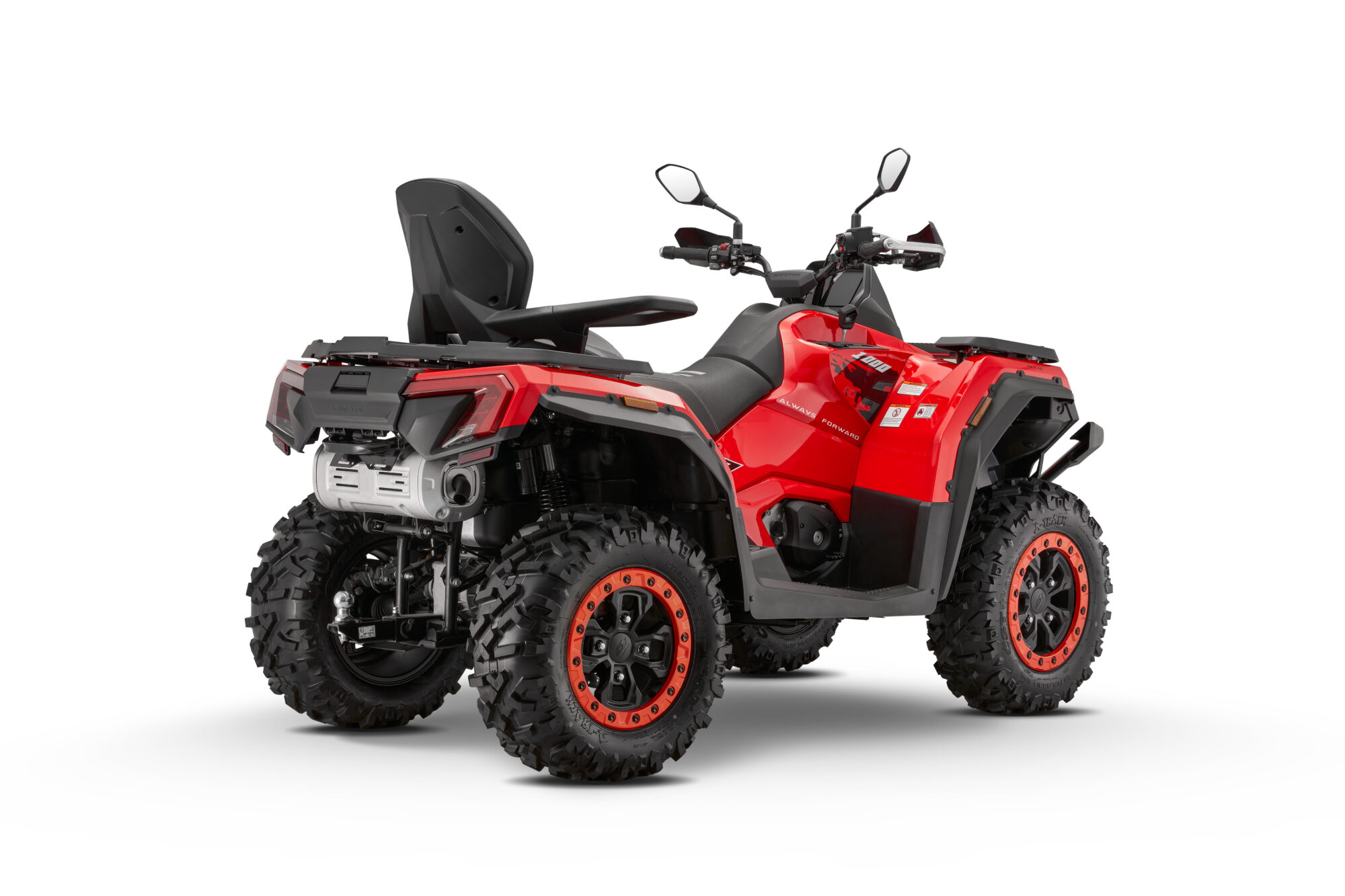 LED-frontlykter, 25 liters drivstofftank, Dobbelt sete/Ergonomisk ryggstøtte, Beadlock teknologi på aluminiumsfelger, 7” TFT-skjerm/Smart tilkobling, Flertrinns luftfjæring, Dobbel lasterack/ 90 kg kapasitet, 2/4 WD / Differensialsperre, Kraftig vinsj med 3500 lb trekkapasitet.