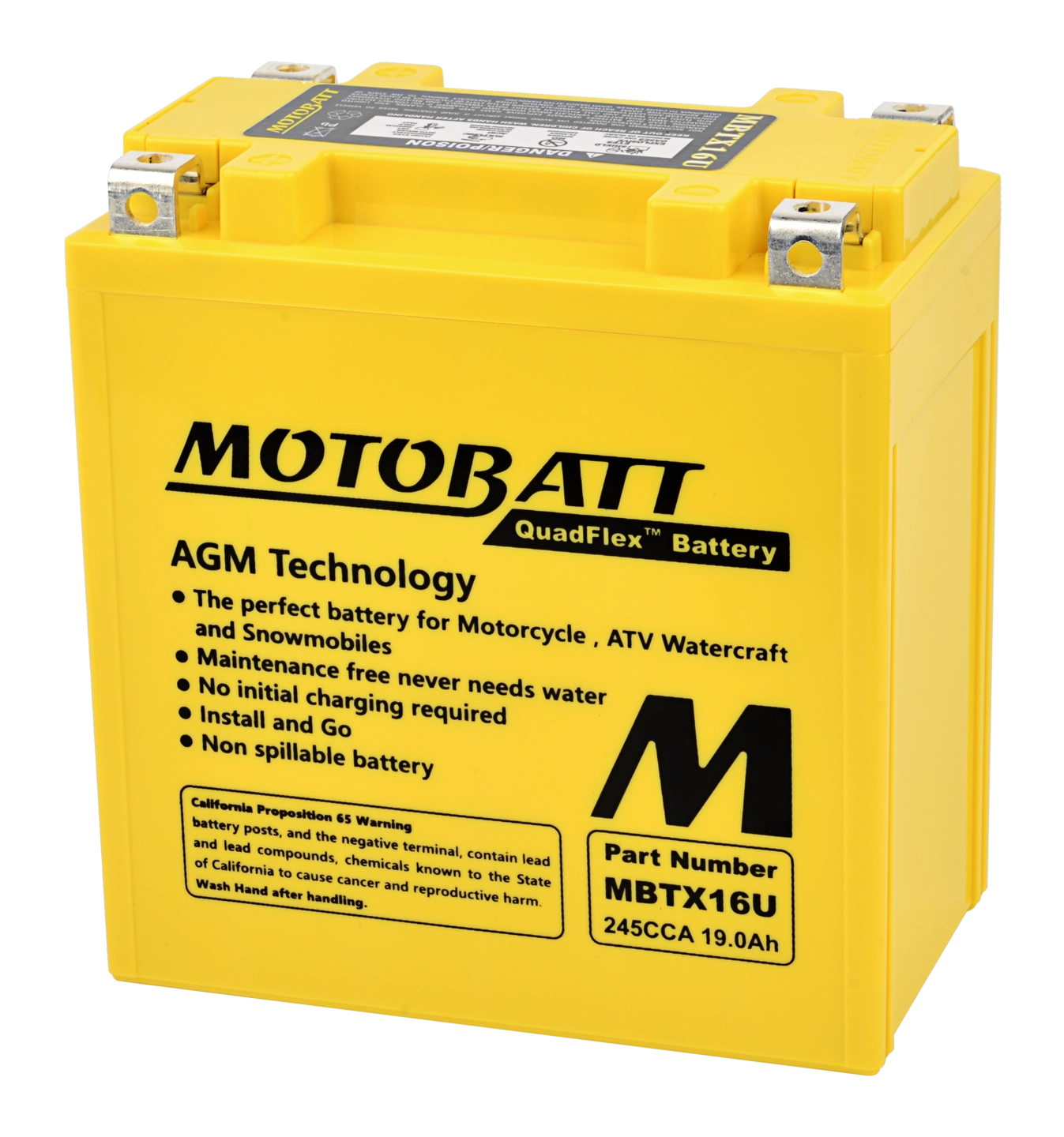 MotoBatt MBTX16U 12V Batteri 4-Polet, 245CCA, 19Ah, 151x87x161, AGM