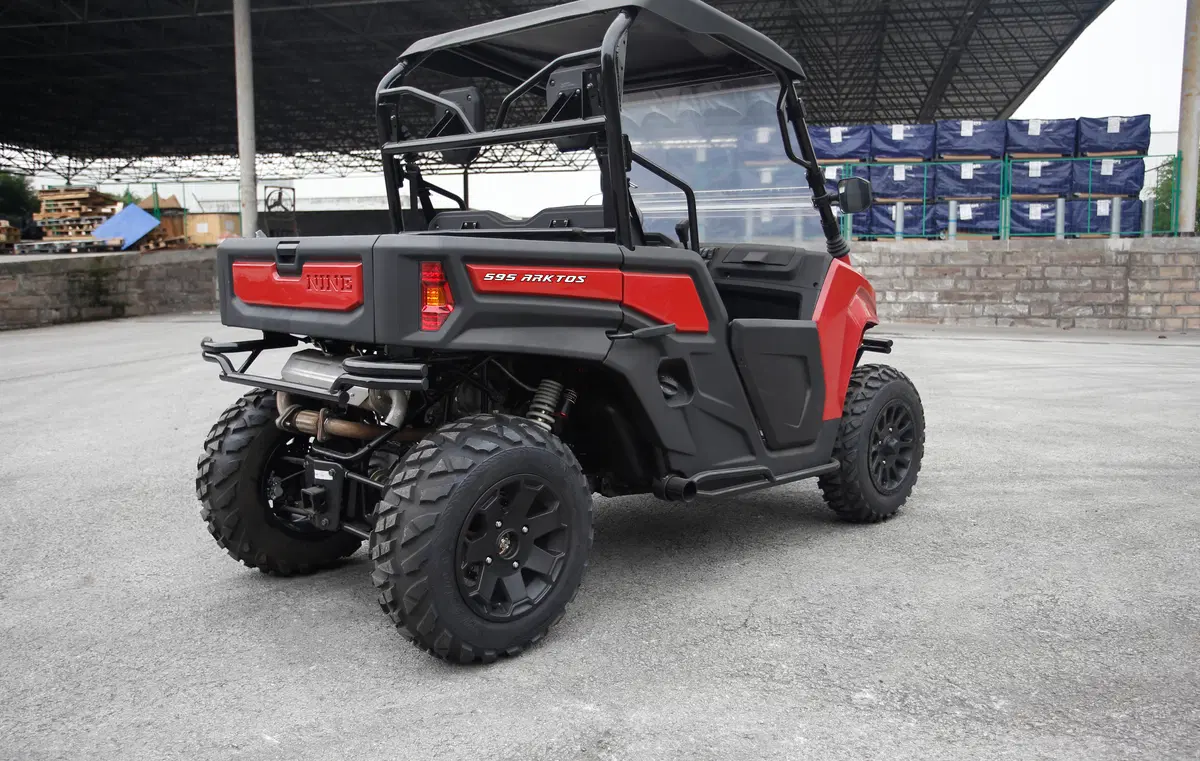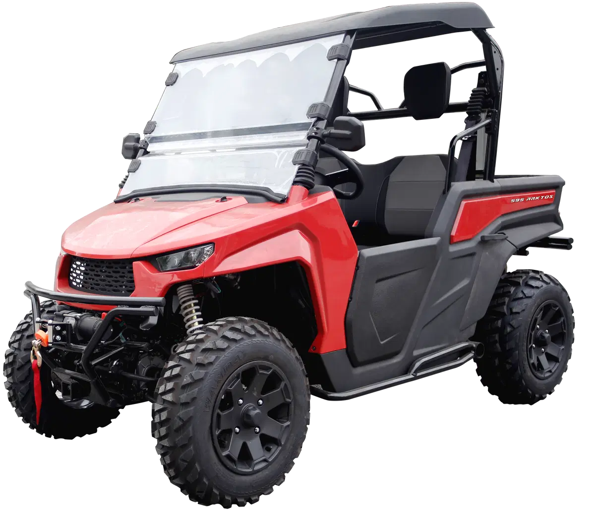 Tak og frontrute beskytter mot elementene. Lave sidedører gir enkel inn- og utstigning. Går turen over stokk og stein, har 595 Arktos gassdempere som gir mindre belastning på kroppen ved kjøring.595 Arktos leveres i 4 farger; Rød, Blå, Grønn og Grå.
